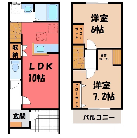 バストイレ別南向き追焚きバスペット相談可P2台可TVインターホンシャンプードレッサー温水洗浄便座メゾネットカウンターキッチン浴室乾燥機インターネット無料二人入居可宅配ボックス即入居可 シャワー駐輪場床下収納 床下収納バストイレ別宅配ボックス フローリング