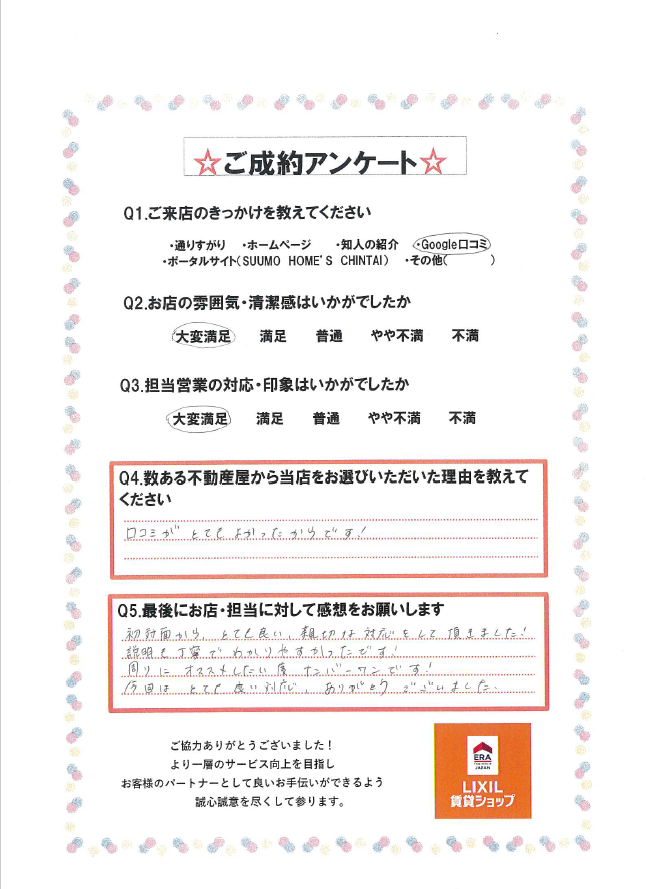 この度は弊社あるある不動産本店をご利用いただきありがとうございました!また、とても嬉しいコメントをいただき励みになります!!退去予定で決めていただくのはなかなか難しいご判断だったかと思いますがとても素敵なお部屋ですので、清掃完了を楽しみにお待ちいただければと思います(*^-^*)猫ちゃんとの新生活が楽しみですね!!ご契約関連も迅速にご対応いただきありがとうございました。残り鍵のお引渡しとなりますが、引き続きよろしくお願いいたします☆彡