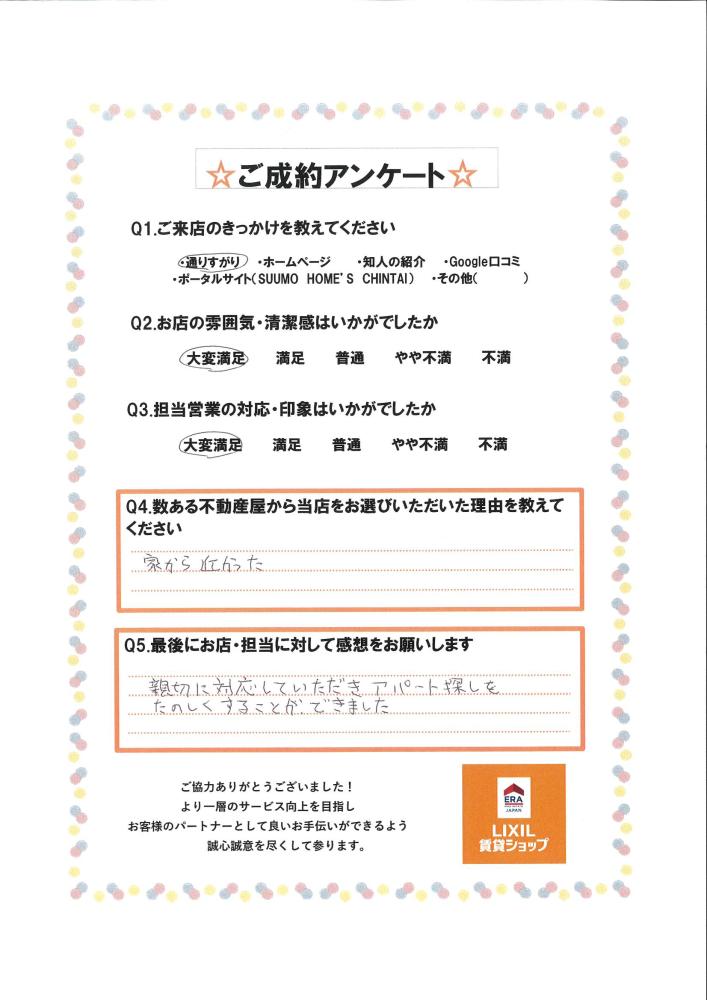 親切に対応していただきアパート探しをたのしくすることができました