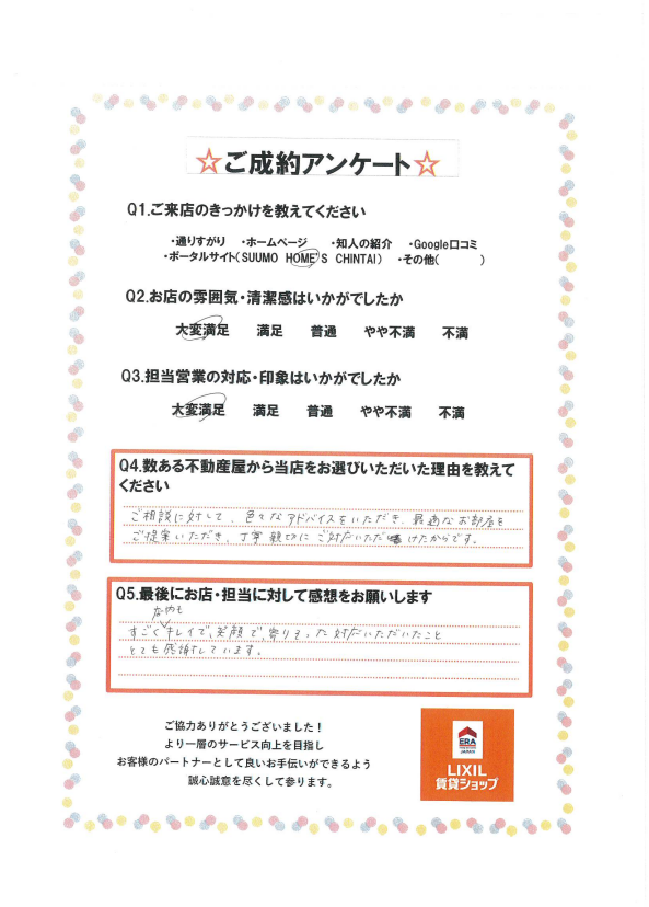 無事ご入居までお手伝いできましたこと大変嬉しく思います。